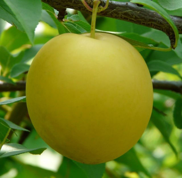 Саженцы алычи гибридной Злато Скифов устойчивы к болезням, зимостойки, относятся к самобесплодным сортам (для опыления следует высадить 2-3 сорта алычи). Дерево средней рослости, с редкой раскидистой кроной, быстрорастущее. Плоды желтые крупные (до 36 г), обладают сочной волокнистой плотной мякотью, спеют в начале июля, пригодны для переработки. Вкус легкий сладковато-кислый, десертный. Крупномер отличается стабильной ранней урожайностью.