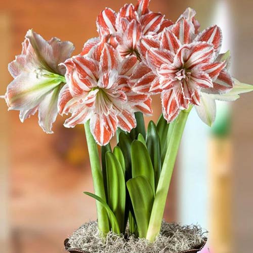 Амариллис махровый "Дансинг Квин" - это великолепное растение с бело-красными цветками, которое поражает своей красотой и изяществом. Высота этого амариллиса может достигать 50-70 см, а размер цветка равен 10 см. Цветение этого растения приходится на июль, август, апрель и март, радуя глаз своими яркими оттенками.