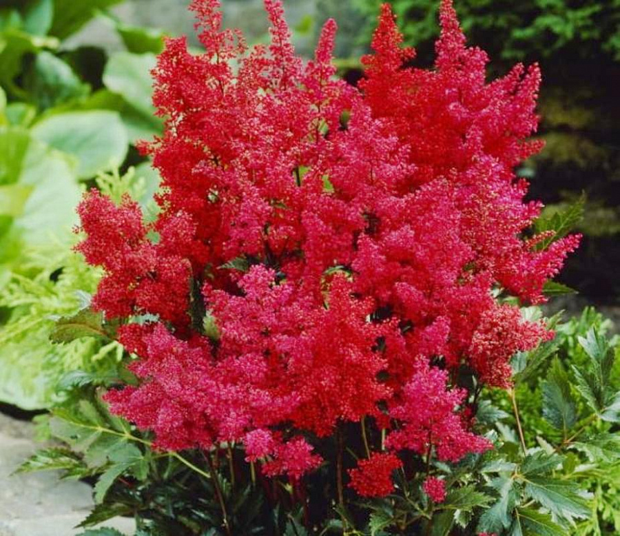 Рассада астильбы Арендса Этна (Etna) вырастают в оригинальные растения с посеченными темно-зелеными листьями и ажурными красными соцветиями ромбовидной формы. Отдельные цветки очень мелкие, и неразличимы на расстоянии. Побеги с соцветиями напоминают ажурные метелки длиной до 25 см. Цветение начинается во второй половине лета и длится до 40 дней. Растения сажают группами. Максимальная высота – 60 см. Хорошо размножается семенами. Верхние побеги отмирают к зиме, весной от корневищ формируются новые почки. Перед заморозками растение желательно присыпать землей и укрывать. Особенности посадки астильбы Этна: