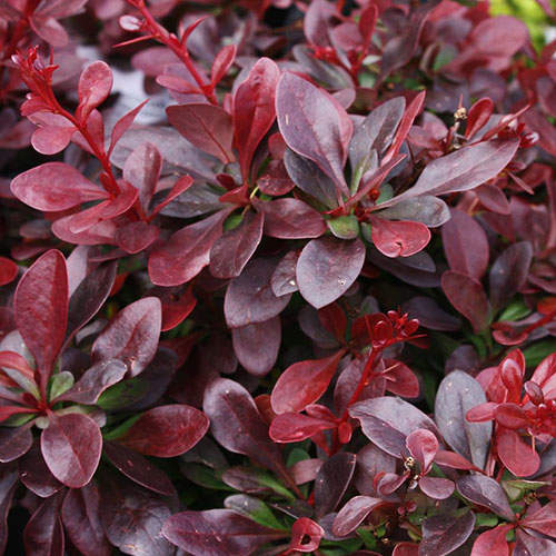 Саженцы кустарника барбариса Атропурпуреа нана (Atropurpurea Nana) – это карликовый подушковидный сорт, высота которого не превышает 60 см, а диаметр может доходить до 1 метра. Листья растения имеют яйцевидную форму и пурпурно-коричневый оттенок, появляются на ветках ранней весной. Осенью листья становятся ярко-красными. Цветки кустарника собраны в соцветия, они округлые желтые внутри и красные с внешней стороны, размер достигает 1см. Часто растение применяется в групповых насаждениях или в смешанных композициях, используется для формирования бордюров и живых изгородей. Отлично переносит стрижку и обрезки. Сорт Атропуупуреа нана высаживается на солнечные места и хорошо переносит несильную тень, но в тени листья сразу начинают зеленеть.