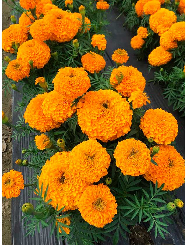 Семена бархатцев «Гавайи» сеют в открытую почву во второй половине мая. Место выбирают солнечное. Также можно семена бархатцев «Гавайи» высевать в парники в конце марта. Выращенные таким способом растения будут дольше цвести. Высота взрослых кустиков может достигать 90 см. Период цветения длится с июля до первых заморозков. Соцветия крупные, до 15 см в диаметре. Лепестки окрашены в ярко-оранжевый цвет. Рассаду бархатцев «Гавайи» часто используют для разделения грядок с овощами. Это растение не только украшает огород, но и отпугивает разных вредителей. Также с его помощью создаются красивые клумбы и рабатки.