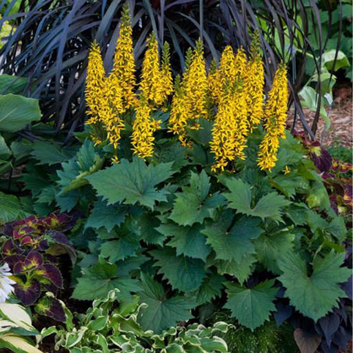 Рассада Бузульника узкоголовчатого Литтл Рокет имеет ровные стебли с крупными листьями, которые чередуются. Цветки ярко желтого тона собраны в метелки или кистевидные соцветия. Примечательной и излюбленной их особенностью является продолжительное цветение. Бузульник цветет с июля до глубокой осени. Это растение требовательно к месту посадки. Любит удобренную почву, лучше всего развиваются в полутени. Нуждаются в регулярном поливе. А если посажен на открытой лужайке, полив должен быть ежедневным и обильным. Он будет расти даже на глинистой почве на протяжении 10 и больше лет.