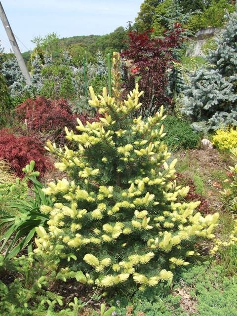 Саженцы Ели колючей Майголд (Maigold) – уникальный вид голубой ели с зеленой хвоей. Крона растения вертикальная, среднерослая, с формой конуса. Растет дерево средними темпами. в период мая-июня можно видеть золотисто-желтый цвет весеннего прироста, который со временем набирает зеленый цвет. Высота растения 5-6 метров, а диаметр 3 метра.