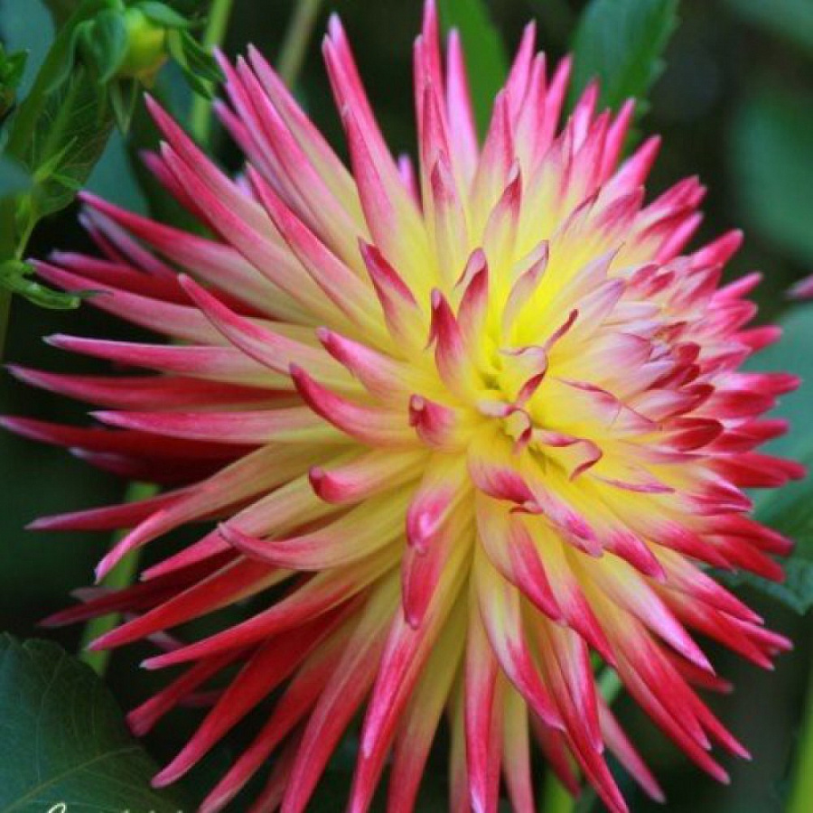 Луковицы Георгины Полукактусовой Электрик Флеш (Dahlia Electric Flash) – идеальный выбор для оформления сада. Этот сорт имеет мега-огромные цветы – до 20 сантиметров в диаметре! И это при средних размерах куста до 80 сантиметров. Яркая и красивая окраска – желтый центр и насыщено-малиновые края лепестков – добавляют Георгине особого шарма и неповторимости. Многолетник сильно ветвится, имеет множество перистых листьев, а цветы представляют собой соцветия-корзинки полумахровые и немахровые. Обилие лепестков, свернутых в трубочки, расходится во всех направлениях от центра. Растение предпочитает солнечные, удобренные места и регулярный полив. На зимний период луковицы извлекают из почвы на хранение.