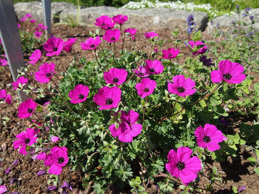 Рассада герани «Джузеппе» (Guiseppe), как и большинство других сортов, неприхотлива. Высаживать можно как на солнечных, так и полузатененных участках. К составу почвы нетребовательна, но хорошо растет среди камней. Поэтому садоводы часто используют рассаду герани «Джезеппе» для создания альпинариев и рокариев. В поливе растение нуждается лишь во время продолжительной засухи. Цветение обильное и продолжается с июня по август. Из семян герани «Джузеппе» вырастает очень красивое почвопокровное растение. Поэтому во время цветения цветок напоминает яркий ковер. Цветочки пурпурные.