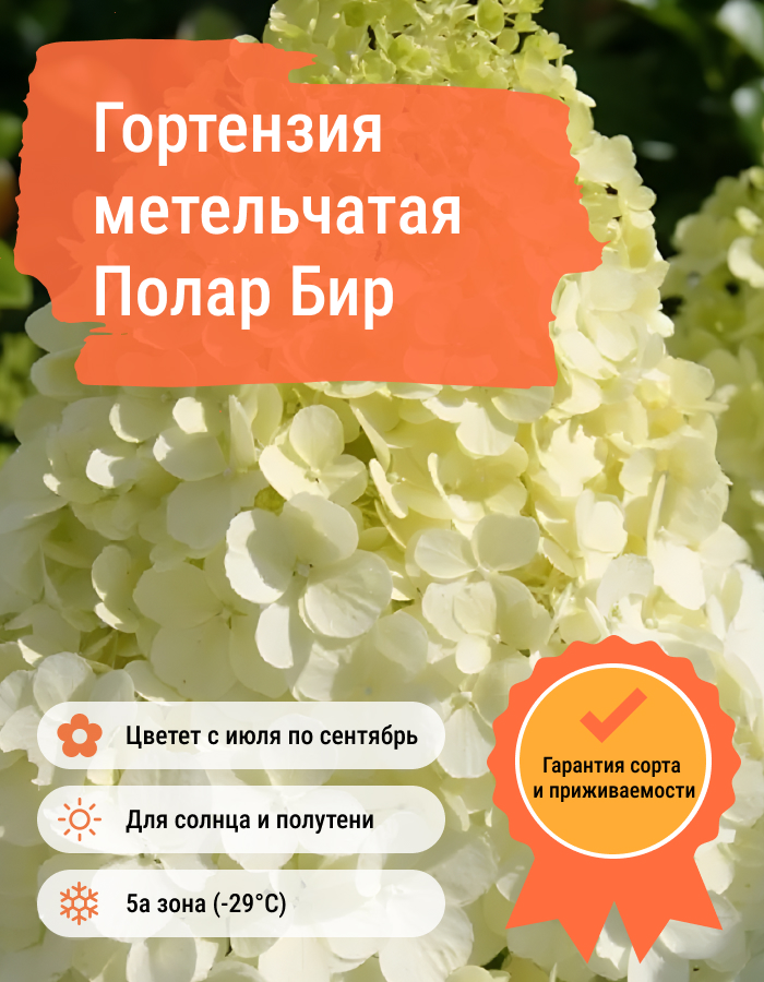 Саженцы гортензии метельчатой Polar Bear (Полар Бир) являются помесью сортов Limelight и Grandiflora.