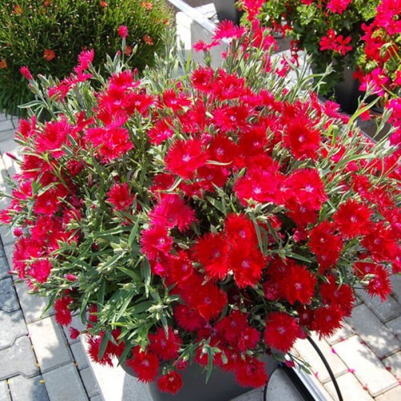 Гвоздика сорта Supra Crimson - это настоящий огненный драгоценный камень вашего сада! Ее красные цветы привлекут внимание и подарят яркие краски вашему участку. Высота этого растения может достигать 25-30 см, что делает его идеальным для групповых посадок. Листья гвоздики Supra Crimson имеют изящную форму и придают ей особый шарм.