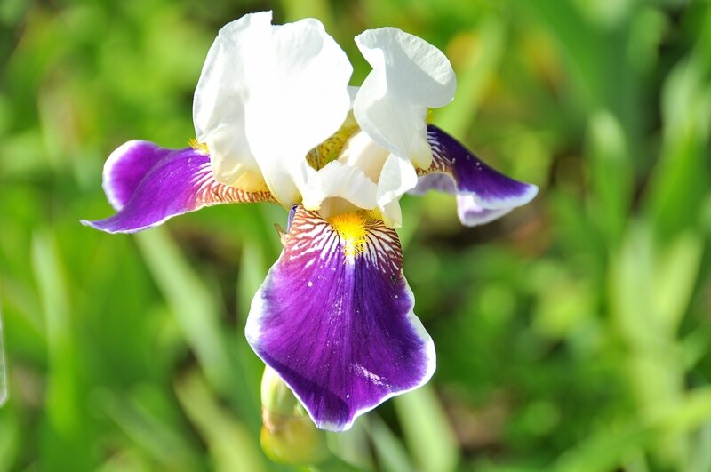 Ирис бородатый "Биг Бразер" - это великолепное растение с изысканными цветками, которые поражают своей красотой и изысканностью. Верхние лепестки фиолетового оттенка с белым пятном в центре, а нижние белые с фиолетовой каймой создают неповторимый образ, который будет радовать глаз в течение всего периода цветения. Листья ириса имеют интересную форму, что делает его еще более привлекательным для любителей необычных растений.