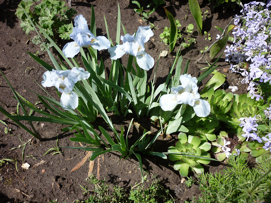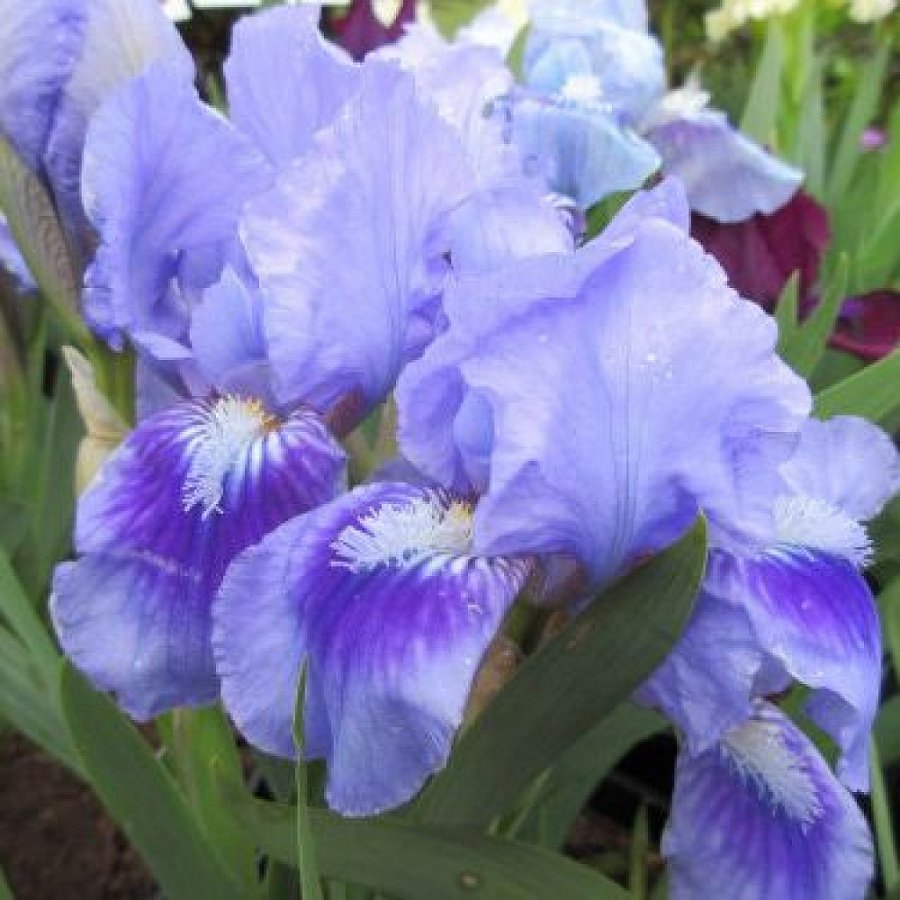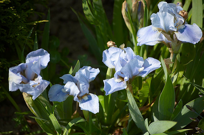 Окраска цветка : Цветок приятного голубого цвета с темным пятном на фолах и ярко-жёлтой бородкой.