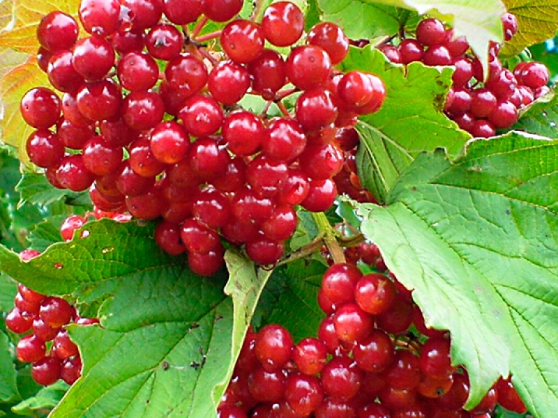 - плоды насыщенно рубинового оттенка, крупные, округлые. Ошибаются те, кто считает калину только лекарственным растением, на самом деле её ягоды имеют хорошие вкусовые качества, могут использоваться для приготовления разнообразных вкусностей.