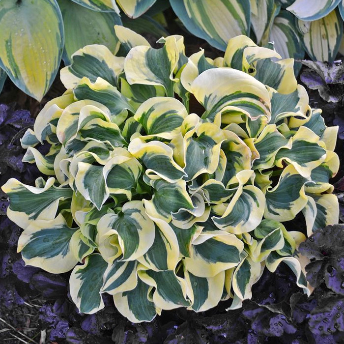 • Весенняя окраска листвы : сине-зеленый центр окружен широким кремово-желтым краем