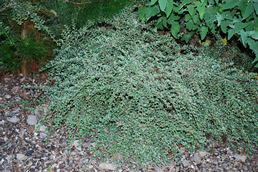 Саженцы кизильника Variegata растут на всех видах садовых почв, к влажности нетребовательны, но не рекомендуется высаживать их вблизи водоемов. Места следует выбирать солнечные или полутенистые. На зиму кустарник желательно укрывать. Побеги горизонтально расположенные, покрыты мелкими зелеными листьями с белым окаймлением. Цветы к малозаметны, появляются в июне. Ягоды созревают в сентябре. Они ярко-красные шаровидные, могут украшать ветки до весны следующего года. Применяют саженцы кизильника Variegata для альпинариев, откосов, в групповых и одиночных посадках, при создании живых изгородей, бордюров.