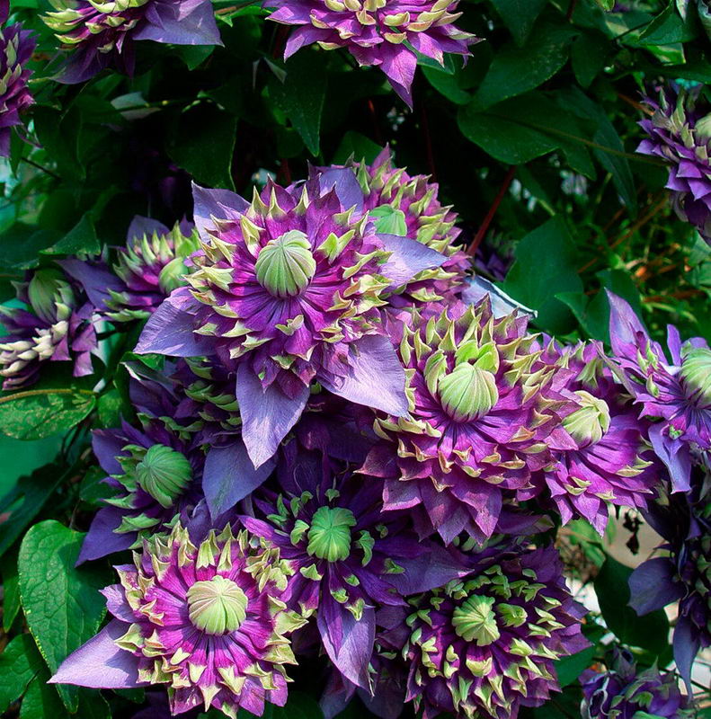 Саженцы клематиса гибридного Тайга (Clematis, Taiga) используются в качестве солитера, а также в групповых посадках. Подходят для формирования живой изгороди, озеленения открытой территории. Высота взрослой лианы достигает 2,5 метра в высоту и 1 метр в ширину. В июне распускается махровыми фиолетовыми цветами с множеством тонких лепестков, кончик каждого окрашен в салатово-сливочный оттенок. Размер цветка достигает 14-15 сантиметров. Для высадки саженцев выбирают плодородную почву с добавлением торфа и песка. Важное условие правильного развития — достаточная освещенность.