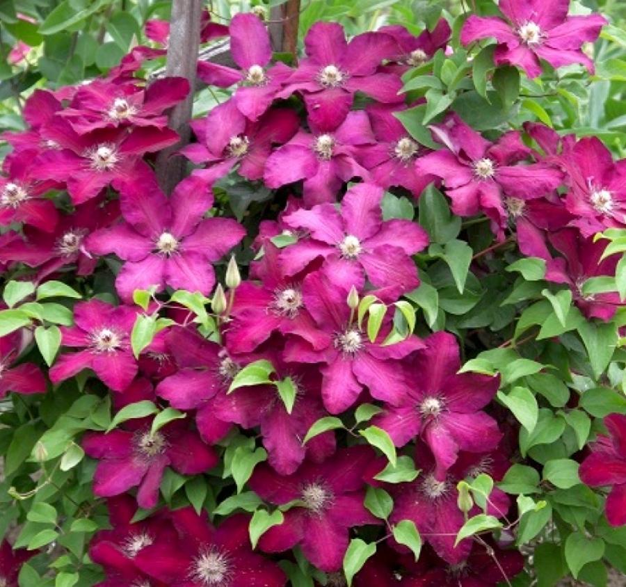 Клематис крупноцветковый Криспина - это великолепное растение, которое поразит вас своей красотой и изяществом. Его стебли, достигающие высоты до 250-400 см, украшены крупными цветками розово-бордового оттенка диаметром 12-15 см. Листья зеленой окраски создают прекрасный контраст с яркими цветами, делая растение по-настоящему великолепным.