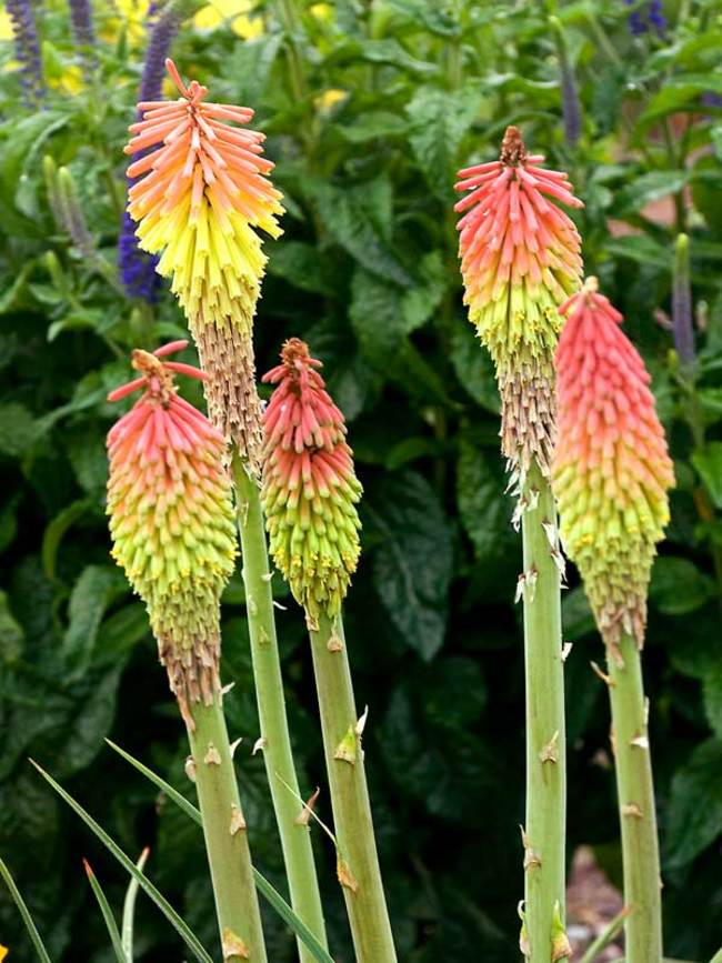 Семена и рассада книфофии (тритомы) лимонно-желтой порадуют любителей ярких соцветий. Это растение ценится за необычную форму цветов, лепестки которых распускаются снизу вверх. Окраска соцветий плавно переходит из зеленовато-лимонного в насыщенно желтый тон. Этот эффектный сорт прекрасно подходит для создания солитерных и групповых посадок, оформления бордюров и задних планов клумб.