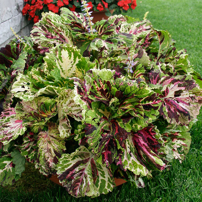 Семена колеуса Русский размер при посеве не присыпают землей, а просто прижимают к почве. Они прорастут через 10-15 дней. Данный сорт выделяется своими крупными листовыми пластинами. Они могут достигать 15-25 сантиметров. Яркие, бархатистые и цветастые листочки расписаны уникальными узорами красно-зеленой гаммы. Растение представляет собой мощный, прямостоящий стебель. Следует сажать сразу несколько растений, чтобы искусственно воссоздать пышный, массивный куст. Колеус Русский размер высаживают в большие контейнеры. Он красив сам по себе, поэтому его редко размещают в группах. Придает яркости и эксцентричности любой клумбе.