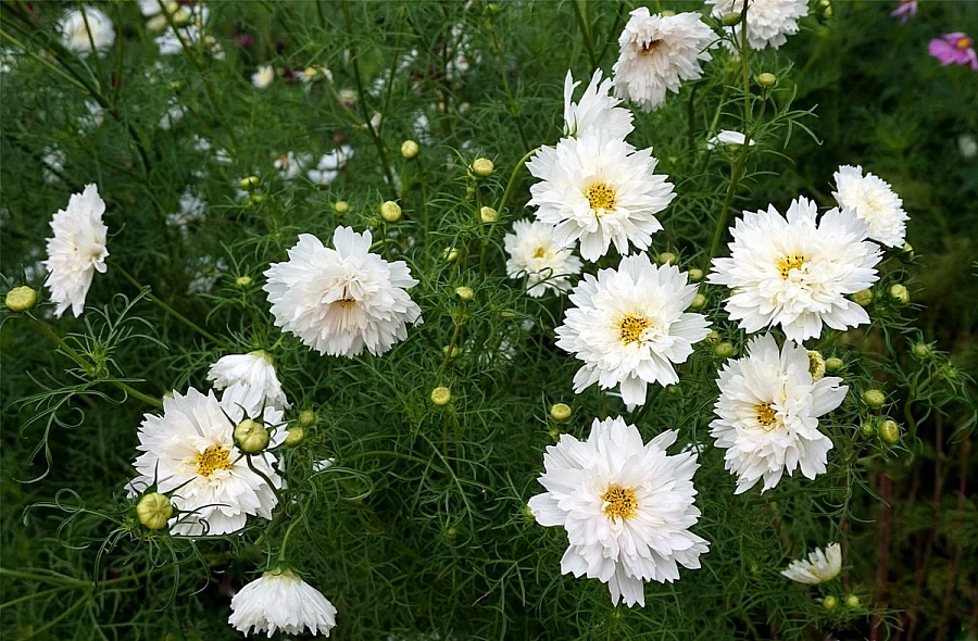 Приобретите космею махровую Психе Вайт и добавьте нотку изысканности и красоты в свой сад. Это растение станет настоящим украшением вашего участка и подарит вам радость своим прекрасным цветением.