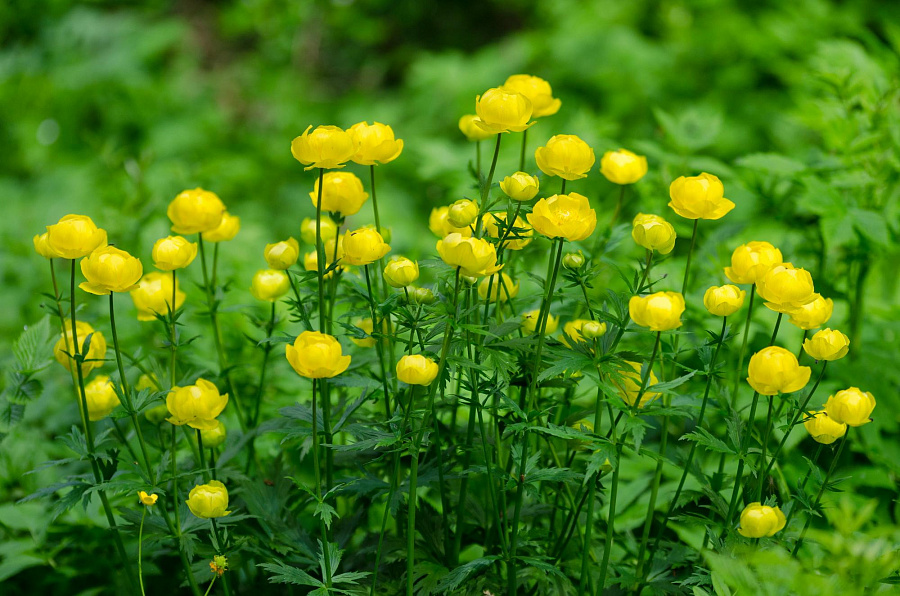 Рассада купальницы европейской (Trollius europaeus) обладает прикорневыми листиками, которые собраны в розетку. Листва имеет пальчатую форму и зеленый окрас. Вырастает около 40-60 см в высоту. Цветет в июле-августе. Цветки желтого цвета слабо душистые. Цветочки шаровидные и крупные около 5 см в диаметре. Плюсы купальницы европейской: