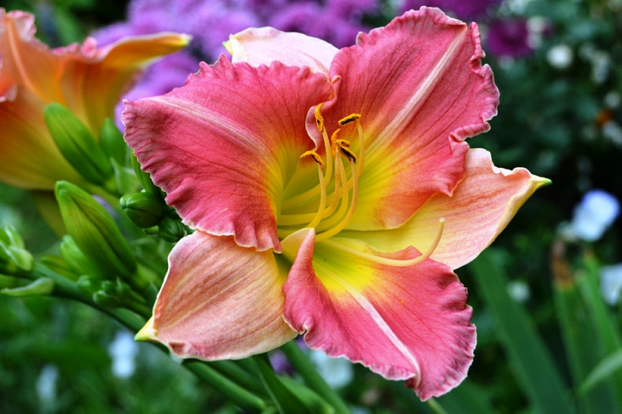 Рассада лилейника Финал Тач (Final Touch) станет достойным украшением многолетней клумбы в саду. Особенно красиво эти цветы с высокими стеблями смотрятся на бордюрных цветниках. Их можно высаживать по самому краю, создавая тем самым цветущую границу участка. Цветки имеют розово-лавандовый оттенок, причем внутренние лепестки распущенного бутона заметно темнее наружных, а его серединка желто-зеленая.