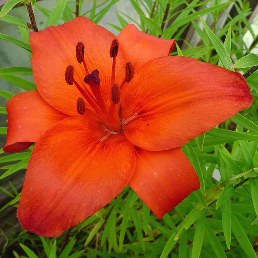 Луковицы лилии азиатской Гран Парадисо (Gran Paradiso) вырастают в высокие стройные растения, зрелищно цветущие роскошными темно-красными цветами. Нежные лепестки раскрываются краями наружу. В центре цветков покачиваются длинные пыльники с бордовыми тычинками. Прочные стебли полностью усеяны короткими линейными листьями.