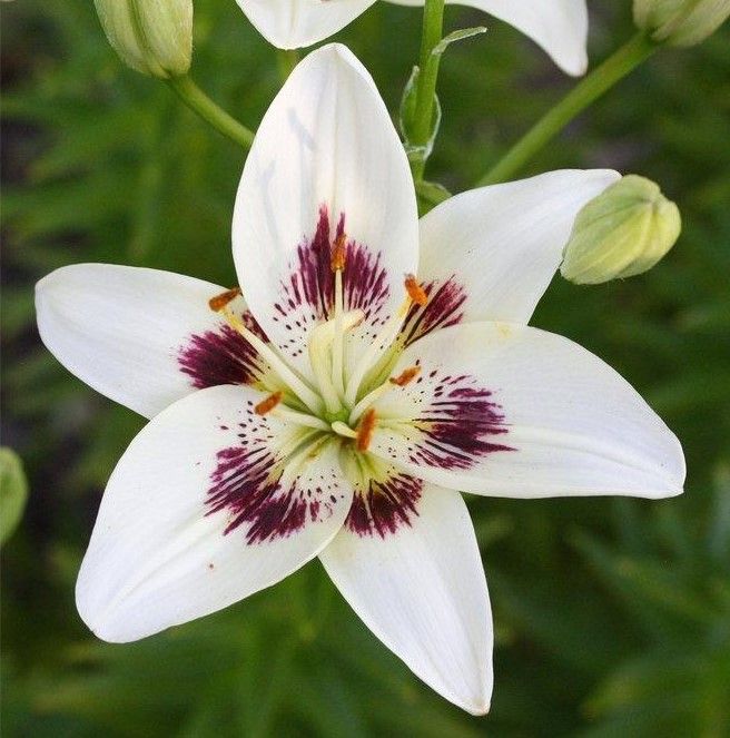 Луковицы лилии Centerfold рекомендуют высаживать в апреле – мае либо в сентябре. Место выбирают солнечное, с легким, рыхлым грунтом. Сорт отличается нежным ароматом и светлой окраской. С июня до августа на лилии Centerfold красуются белые крупные цветы, в серединке которых присутствуют фиолетовые штрихи. Диаметр раскрытых бутонов около 15 см. Растения используют для одиночных и групповых посадок, создания ароматных акцентов в смешанных цветниках, оформления различных зон сада.