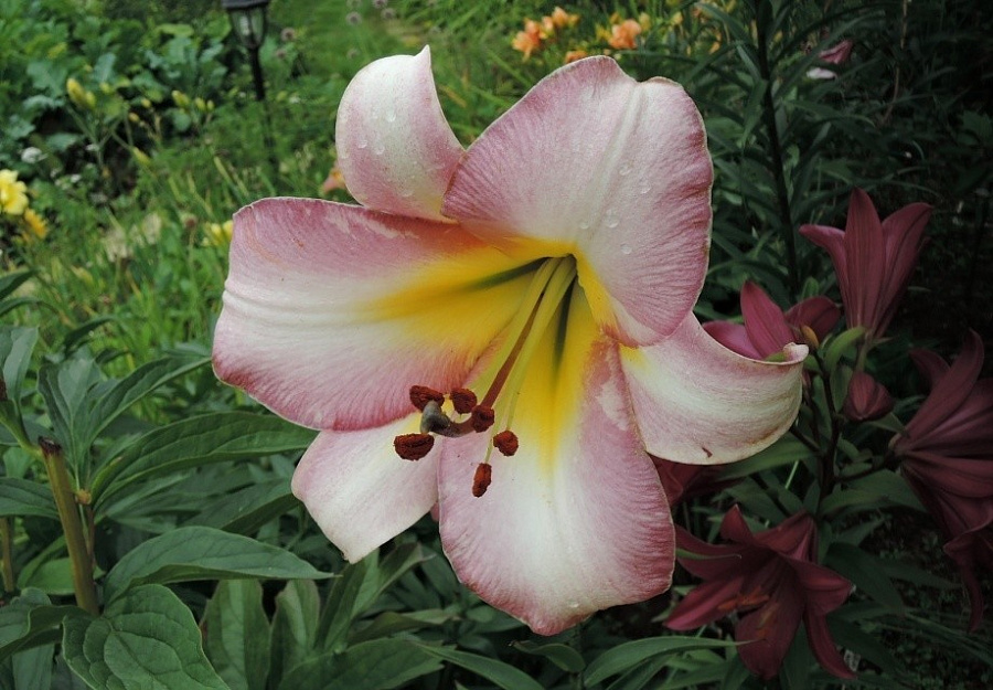 Лилия от-гибрид Бейджинг Мун - это великолепное растение с белыми цветками, украшенными сиреневой каймой и жёлтым центром. Ее высота может достигать до 100 см, а размер цветка поражает воображение - до 22 см! Этот сорт лилии цветет в июле и августе, радуя глаз своим изысканным видом. Лилия от-гибрид Бейджинг Мун предпочитает солнечные и полутенистые места для посадки, а также дренированные богатые почвы.