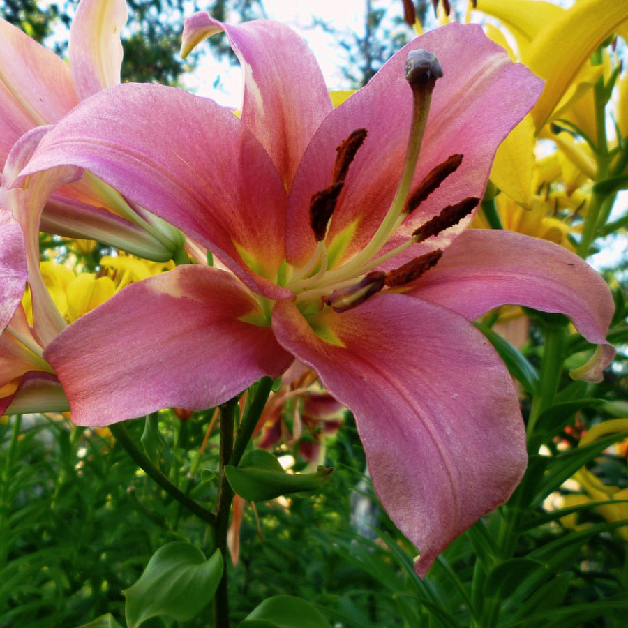 Луковицы лилии Visa Versa лучше всего растут на хорошо освещенных участках с питательной, рыхлой, дренированной почвой. Высаживать их нужно в лунки на глубину 15-20 см и на расстоянии до 25 см. Высота плотных стеблей около 90-120 см. Цветки чашевидной формы с закрученными лепестками, очень яркого малиново-розового окраса с перламутровым отливом и с желто-зеленым горлышком. Смотрятся не совсем обычно и эффектно. На протяжении всего цветения от лилий Visa Versa исходит насыщенный, характерный аромат со сладковатыми нотами.