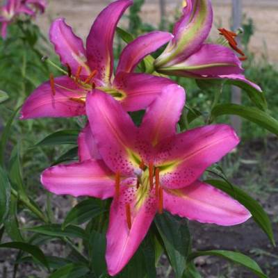 Лилия восточная "Дордонь" - это изысканное растение, которое поразит вас своей красотой и изяществом. Ее темно-розовые цветы с зеленым горлом до 15 см в диаметре привлекут восхищенные взгляды садоводов и гостей вашего участка. Высота растения может достигать до 110 см, что делает его идеальным для групповых посадок или создания миксбордеров.