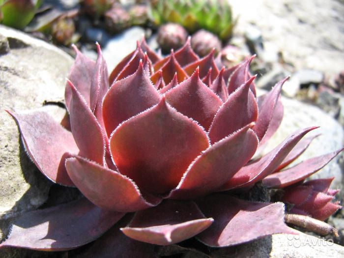 Рассада молодила Пурпуреум (Purpureum) популярен благодаря своим свекольно-красным листьям. Имеет компактный, аккуратный внешний вид и вырастает около 5-10 см в высоту. Цветение преподает на период с июля по август. Достоинства молодила Пурпуреум: - морозоустойчив - очень живучий, может пролежать долгое время под солнцем и удачно развиваться после осуществления посадки - не требуется сложный уход Семена молодила Пурпуреум можно сажать на солнечных и теневых дачных участках. После посадки нужен регулярный, обильный полив на протяжении недели. Идеально подойдет для альпийских горок.
