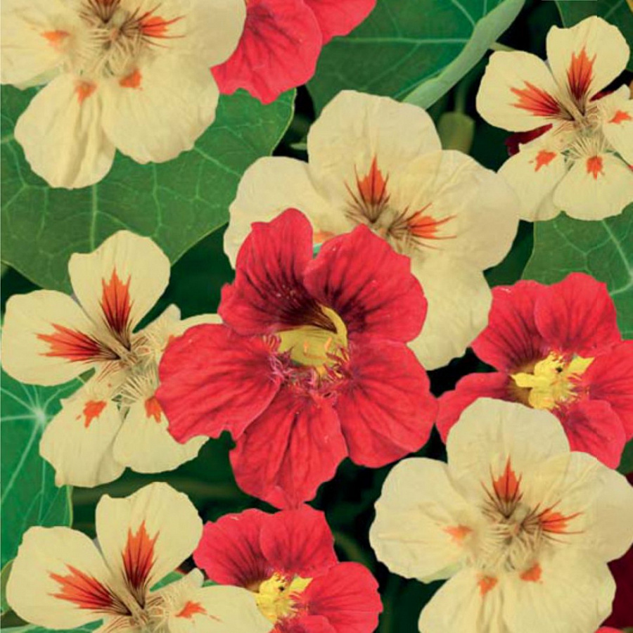 Позвольте этому цветку украсить ваш сад своей яркой красотой и создать уютную атмосферу благодаря своему неповторимому виду. Настурция "Клубника со сливками" - идеальное растение для тех, кто ценит красоту и легкость ухода в одном флаконе.