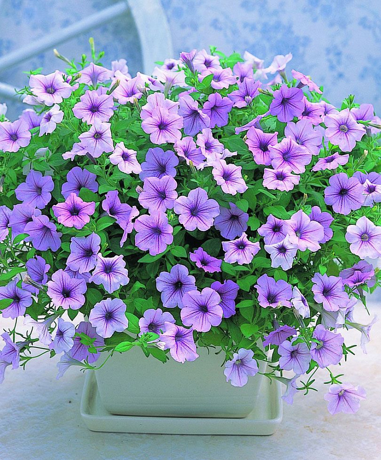 Петуния ампельная опера лилак айс - это волшебное растение, которое принесет в ваш сад неповторимую красоту и уют. Ее стебли изящны и гибки, позволяя создавать потрясающие композиции в горшках или висячих корзинах. Цветки этой петунии имеют диаметр до 5-6 см и окрашены в нежный фиолетовый оттенок, что придает им особую изысканность.