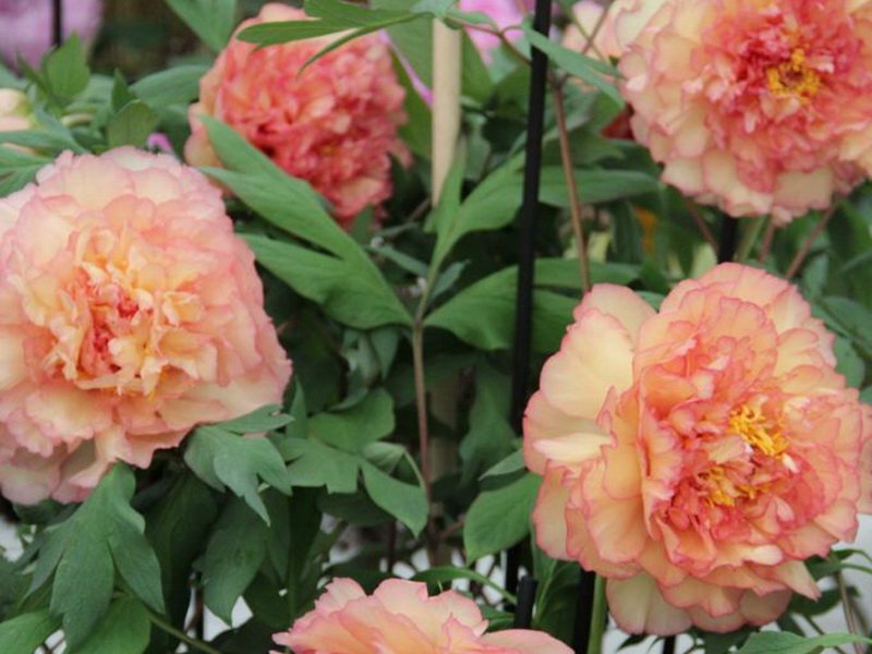 Саженцы пиона древовидного Кинко (Paeonia Suffruticosa Jin ge) - удивительно декоративный цветок, украсит любой сад и приусадебный участок. Куст достигает в высоту до 150 сантиметров. Лепестки красивые, интенсивного зеленого цвета. Цветет с середины лета на протяжении двух-трех недель. Махровые цветки нежного, золотисто-желтого цвета. Вокруг ярко-желтой серединки лепестки окрашены в алый цвет и такого же цвета нежная окантовка по каждому лепесточку. Цветок имеет корончатую форму, его диаметр – около 16 сантиметров. Любит солнечные местности, богатые, хорошо дренированные грунты.