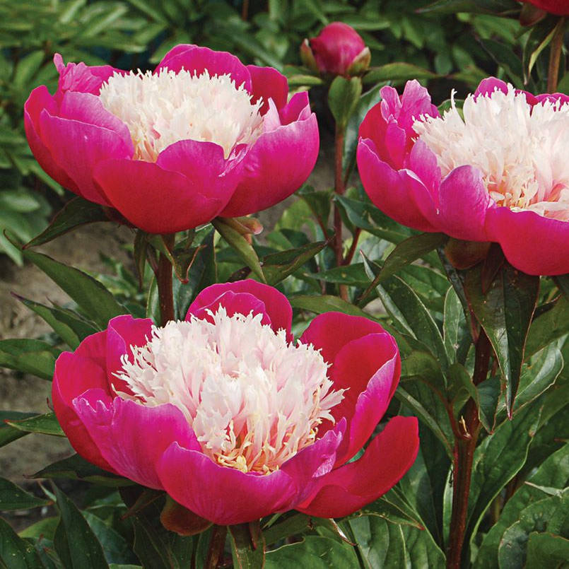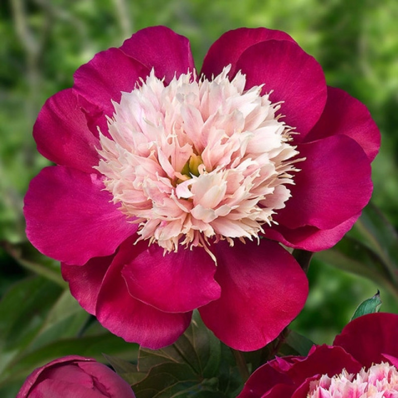 Рассада пиона молочноцветкового Уайт Кэп (White Cap) – здоровая и проверенная, вырастает эффектные растения с цветами оригинальной расцветки. Бледно-розовая сердцевина, обрамленная малиновыми лепестками, действительно напоминает чашу. Кудрявая сердцевина ярко контрастирует с боковыми гладкими лепестками. Зеленые листья расположены на побегах рядами. Стебли прямые и прочные. Высота взрослого растения 80-100 см. При правильной посадке многолетник будет радовать своим цветением долгие годы без пересадки. Особенности посадки пиона Уайт Кэп: