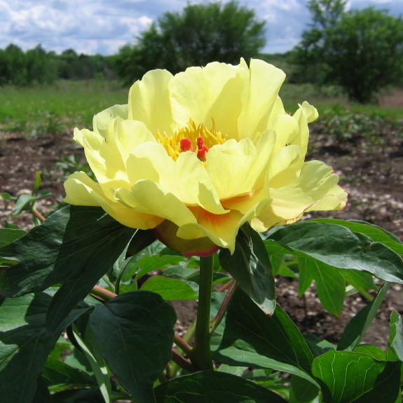 Саженцы пионов Саншайн (Sunshine) принадлежат к достаточно простому сорт. Многолетник компактный простой чашеобразный. В высоту достигает от 70 до 80 см. Цветение приходится на май, июнь. Лепестки цветка красной смородины с легким оранжевым оттенком. В уходе саженцы пионов Саншайн неприхотливы и не требуют особых условий. Сорт обладает устойчивостью перед садовыми вредителями и болезнями, а также стойко переносит даже самые сильные морозы. Растение не любит застоя влаги, при этом в период засухи нуждается в дополнительном поливе.