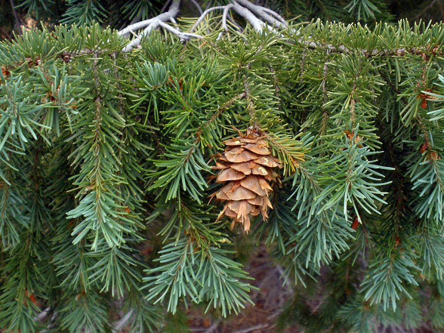 Саженцы Псевдотсуги Мензиса Канина (Kanina) – сорт, который люди ценят за медленный рост, высота за много лет не превысит трёх метров. Всходы у этого растения жесткие, можно сказать жесткие. Кроной Мензиса Канина устремляется вверх, а нижние ветви растут горизонтально. Зелёные хвойные игры с голубыми полосками плотно облепляют побеги, но они совсем не колючие.