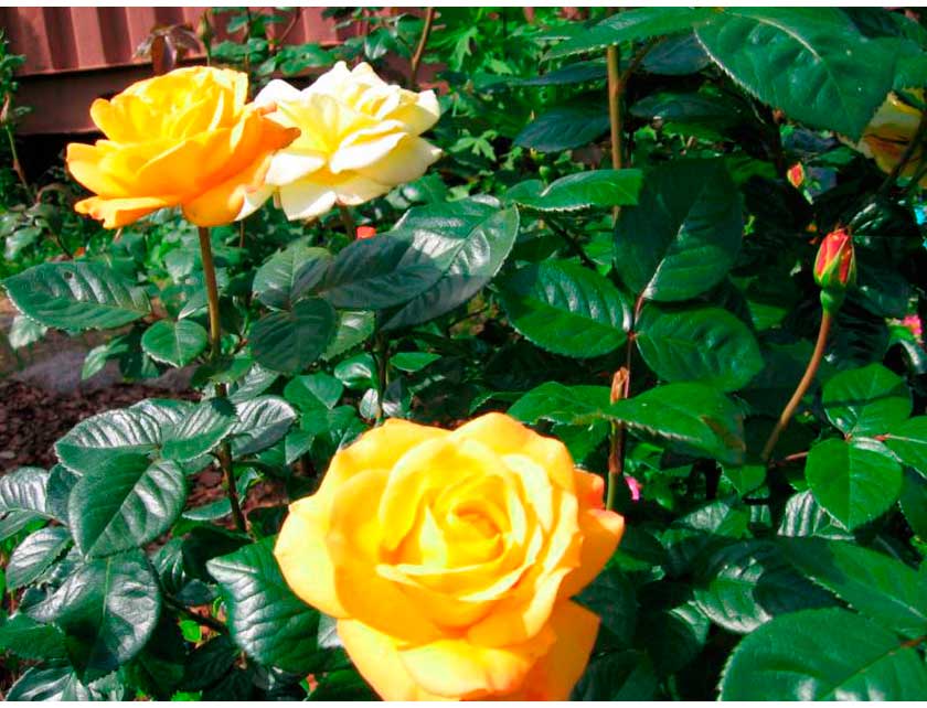 Роза парковая Чайнатаун - это великолепное растение с кремово-желтыми цветками, украшенными темно-розовыми штрихами. Ее ствол прочный, а листья имеют изящную форму, что делает эту розу по-настоящему уникальной. Высота растения может достигать 90-110 см, что позволяет создать великолепные групповые посадки в саду или на клумбе.