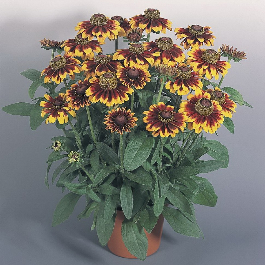 Саженцы рудбекии волосистой Тото Рустик (Toto Rustic) пользуются популярностью среди опытных и начинающих садоводов благодаря длительному цветению, неприхотливости и эффектному виду. Вырастая, растение достигает 30 сантиметров в высоту и примерно такого же диаметра. В начале лета на прямых цветоносах распускаются эффектные цветы с шаровидными серединками и яркими многоцветными лепестками. Этот сорт наполнит яркими красками садовые клумбы или послужит прекрасным материалом для составления роскошных букетов. Рудбекию можно выращивать на балконе или на подоконнике жилого помещения.