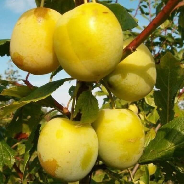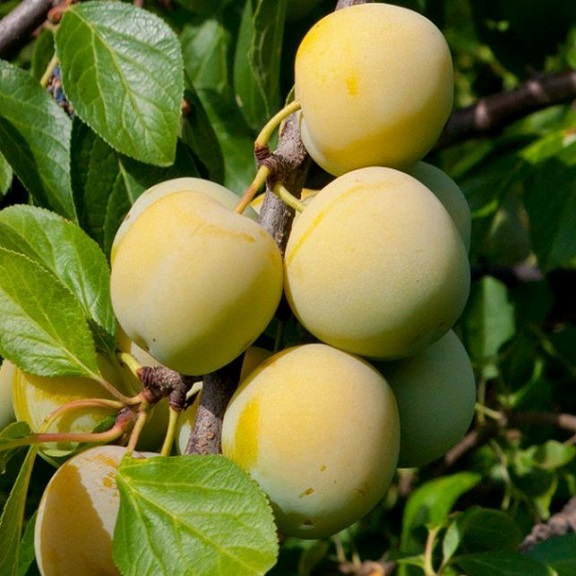 Саженцы сливы Ренклод колхозный знакомы всем садоводам, ведь этот сорт создал сам И. В. Мичурин. Скрестив два сорта – «Тернослива» и «Ренклод зелёный», учёный получил золотисто-жёлтые плоды с прекрасными вкусовыми качествами и деревья, максимально приспособленные для роста в климатических условиях нашей страны. Высокая урожайность сорта стала поводом выращивания этой сливы на государственном уровне в масштабах всей страны. Первые плоды появятся через 4-5 лет. Крупномер-шестилетка принесёт уже до 8 кг с дерева, а дерево 11 лет – до 51 кг! При посадке надо выбирать солнечные места и обеспечивать регулярный полив.