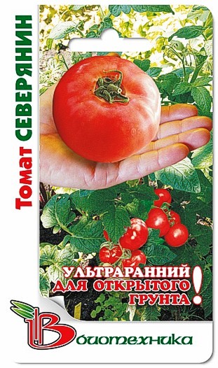 Семена томата "Северянин" предназначены для открытого грунта и пленочных укрытий. Куст полуштамбовый, компактный. В кисти созревает по 5-6 плодов. Период от всходов до плодоношения составляет 92-95 дней. Созревание плодов дружное. Плоды округлые, слегка уплощенные, с кожицей красного цвета. Помидоры обладают высокими вкусовыми характеристиками и ярко выраженным ароматом. Для хорошего вызревания, в условиях Северо -Запада, лучше оставлять на растении не более 3-4 кистей. Сорт универсален в использовании, подходит для приготовления в свежем виде и консервации.