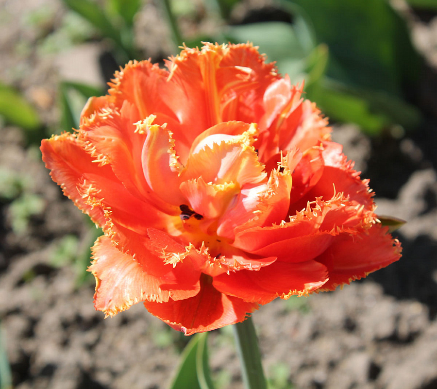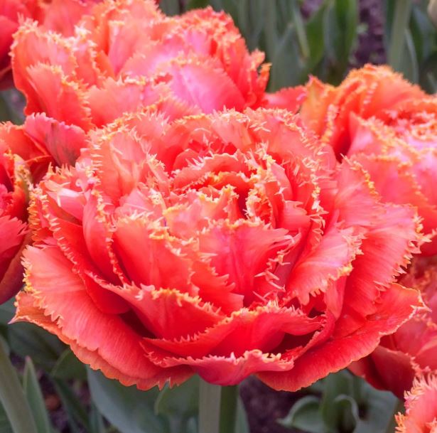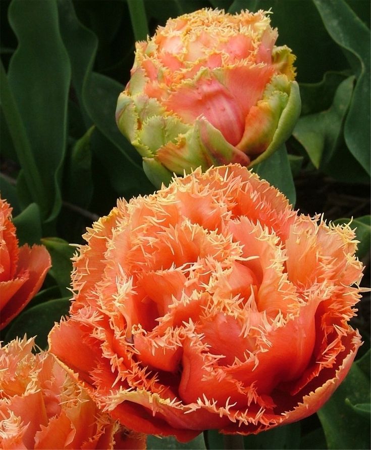 Окраска цветка : оранжево-розовый с кремовой бахромой, махровый