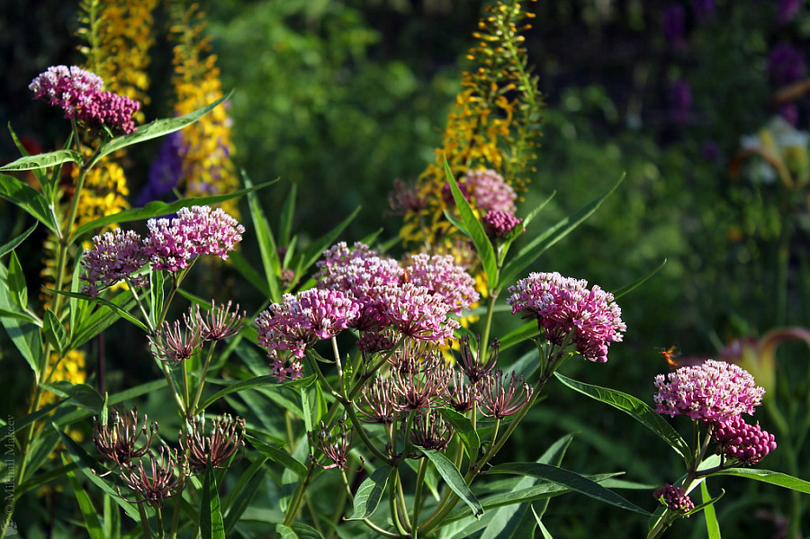 • Окраска цветка : пурпурно-розовый окрас соцветий