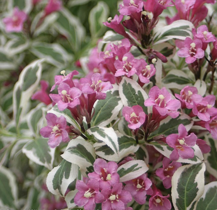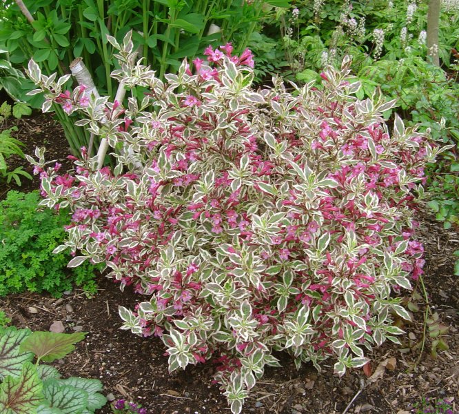 Вейгела цветущая вервайг - это изысканное растение с густо-розовыми цветками, украшенными огненно-красным глазком. Ее ствол прочный и устойчивый, а размеры растения позволяют создать великолепные композиции в саду или на террасе. Листья вейгелы имеют интересную форму и насыщенный зеленый оттенок, что делает растение еще более привлекательным.