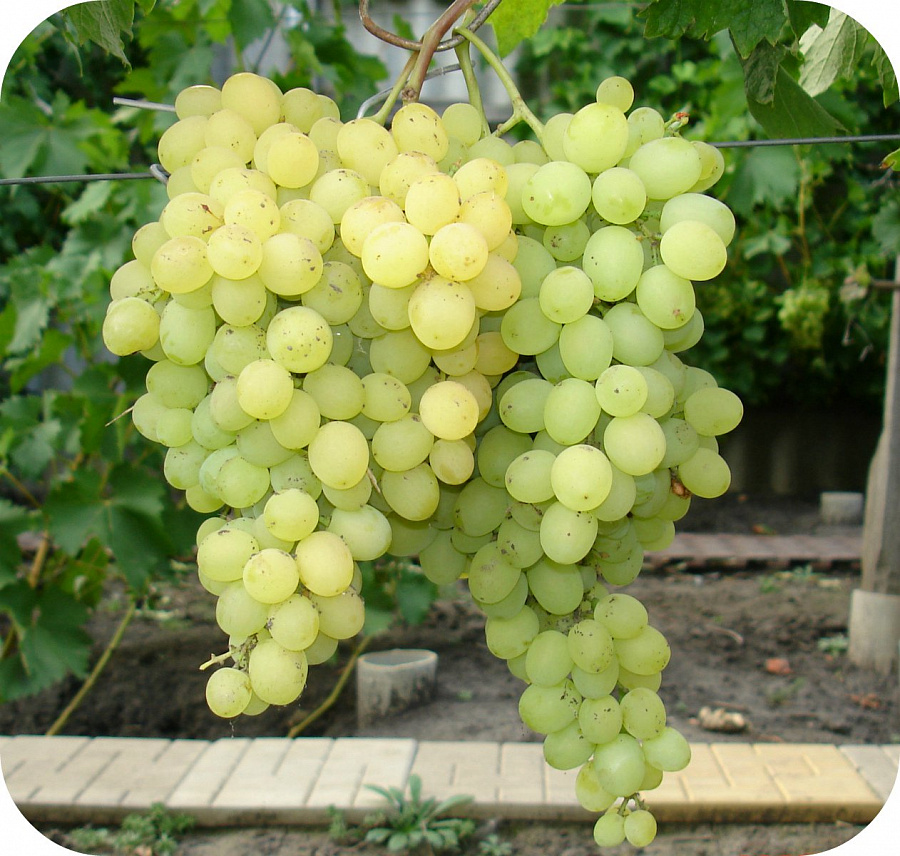 Урожайность высокая – до 120 ц/га. От обрезки меняется количество гроздей, а не суммарный вес собранных ягод. На побегах с 6-8 глазками созревает много кистей массой немногим больше 500 г. Если оставить 2-4 почки, грозди могут весить до 2 кг, но будет их меньше.