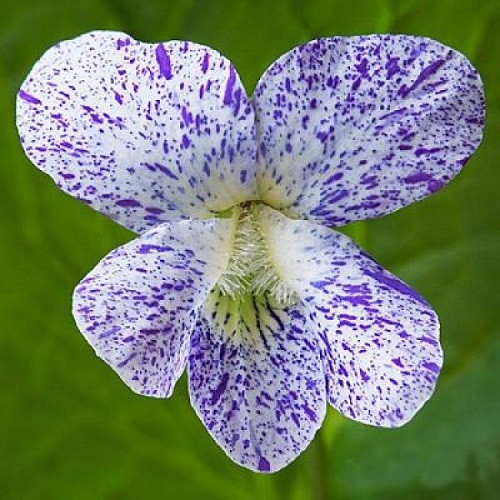 Рассада виолы Фриклис (Freckles) вырастает в высоту до 15 см. Обладает интересной листвой сердцеобразной формы, благодаря чему легко использовать в разнообразных композициях. В мае-июне зацветает одиночными цветами белоснежного окраса с мелкими синими мазками. Преимущества растения: