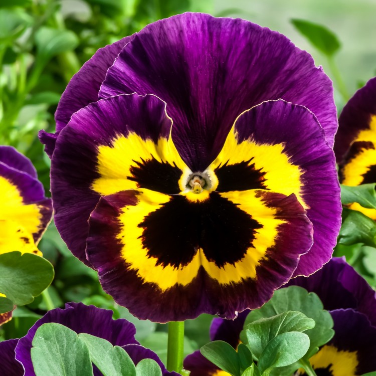 Виола крупноцветковая Inspire Plus Yellow Purple Wing - это волшебное растение, способное принести яркие краски и радость в ваш сад. Ее стебель нежный, листья формы сердца создают уютную атмосферу, а цветы фиолетово-белого цвета с черными вкраплениями привлекают взгляды и вызывают восторг. Высота растения достигает 15-20 см, что делает его идеальным для групповых посадок.