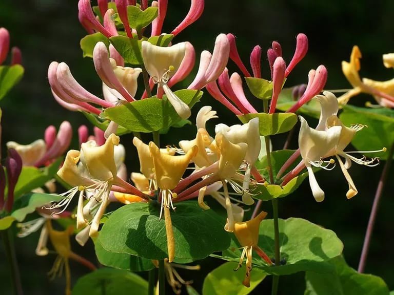 Саженцы жимолости Инга (Inga) вырастут в лиану длиной до 4 метров. Гибкие побеги покрыты светло-зеленой листвой, меняющей осенью окраску на золотую. Цветение приходится на май и июнь. Цветки ароматные, необычной формы, похожи на мотыльков или паучков бело-розового цвета. Плоды жимолости Инга не съедобны.