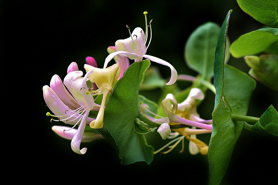 Саженцы жимолости Каприфоль можно сформировать как куст при посадке крупномера в лунку или как лиану для вертикального озеленения при посадке в траншею. Растение образует большую массу блестящих зеленых листьев на коротких черешках. Цветет жимолость Каприфоль в мае-июне ароматными кремово-розовыми цветами. Используется в фармакологии.